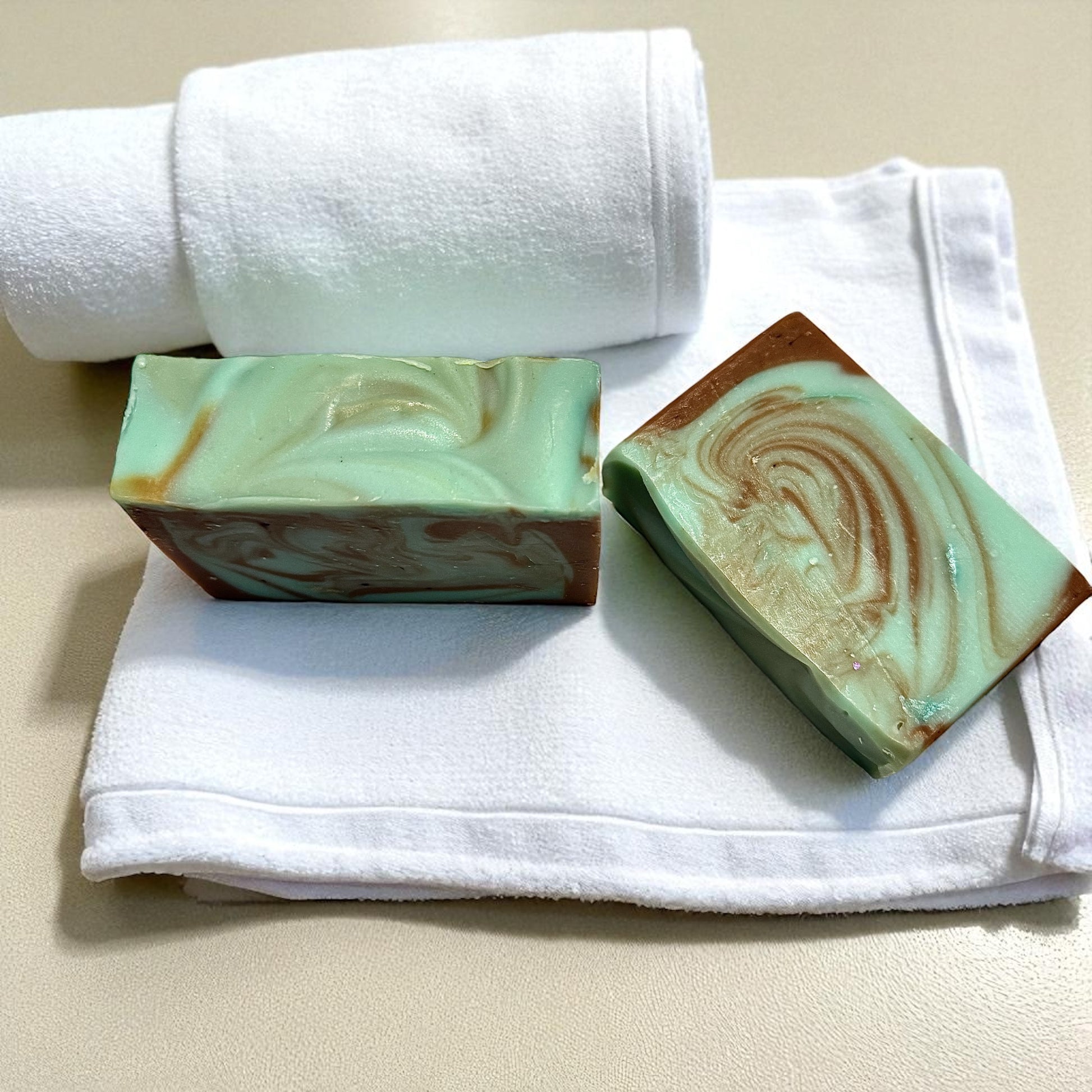 Ingredients; Olive Oil. Organic Coconut Oil. Shea Butter. Castor Oil. Distilled Water. Sodium Hydroxide. Cocoa Powder, Mica, Fragrance.
