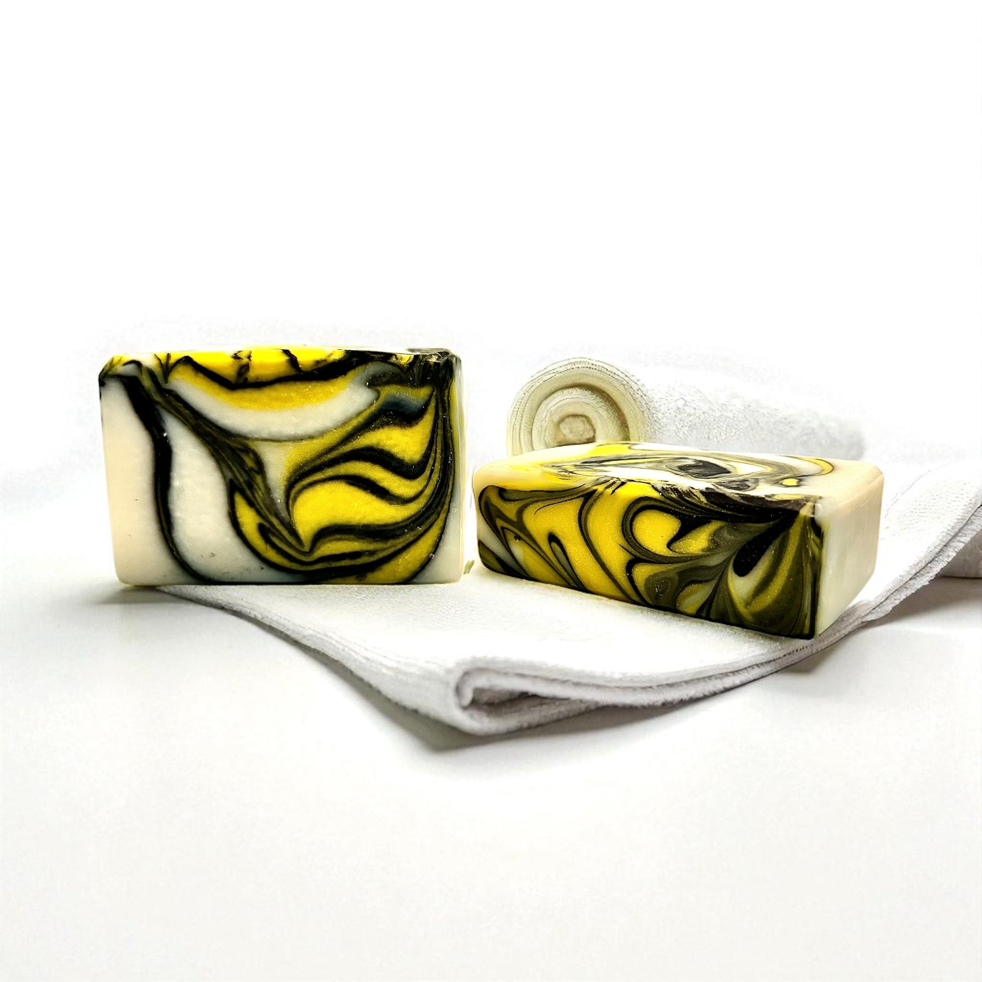 Ingredients : Olive Oil. Organic Coconut Oil. Shea Butter. Castor Oil, Distilled Water. Sodium Hydroxide, Mica, Fragrance