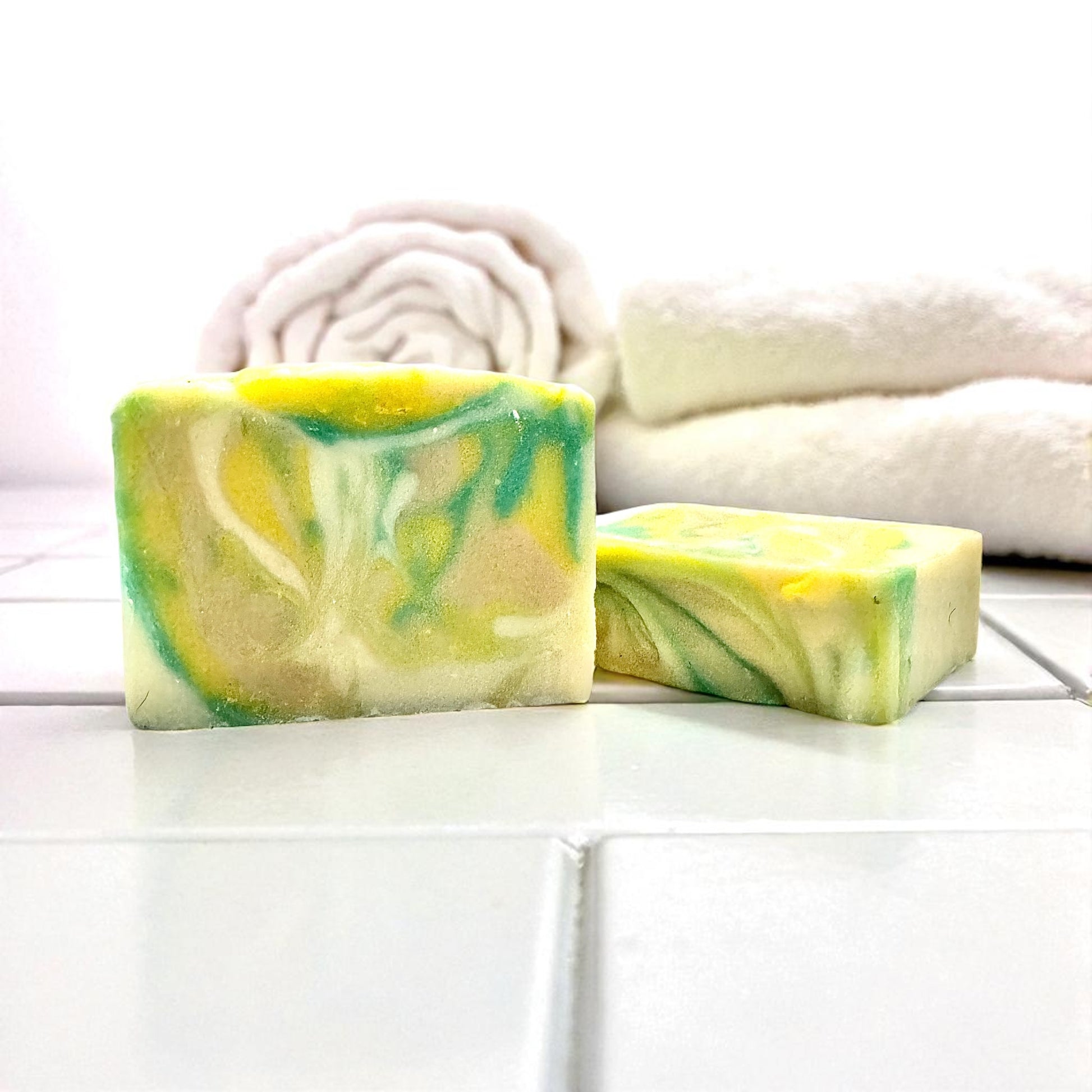 Ingredients - Olive Oil. Organic Coconut Oil. Shea Butter. Castor Oil, Distilled Water. Sodium Hydroxide, Mica, Essential Oils